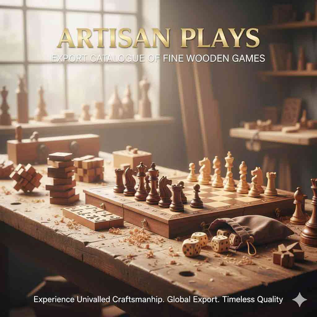 • Wooden Games & Dice Sets: Beautifully carved traditional and modern wooden games, perfect for gifting and wholesale export.Each piece is handmade using ethically sourced wood, traditional carving techniques, and safe finishing materials. Our wooden products are popular among décor stores, homeware brands, wholesalers, and buyers looking for sustainable and handcrafted options.